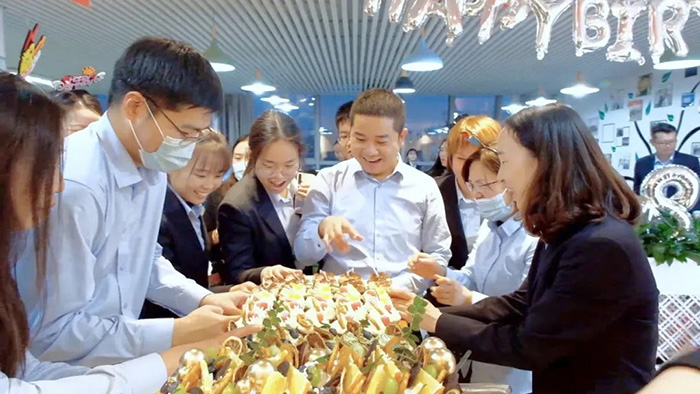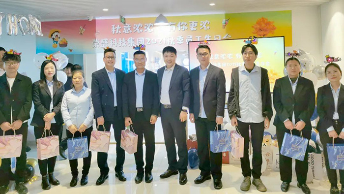 秋風簌簌,揮毫潑墨遍將層林盡染;寒霜凝凝,靜默不語悄為初冬作序。為增加企業團隊凝聚力,豐富員工精神文化生活,11月6日下午,榮盛科技集團隆重舉辦了「秋意濃濃,有你更濃——2021秋季員工生日會」,集團董事長楚科奇、總經理王海軍、技術副總經理崔戰濤、董事長助理張阿麗、外貿總監張運河等集團領導與來自各個部門的60余名壽星齊聚一起,共慶生日,共享快樂時刻。