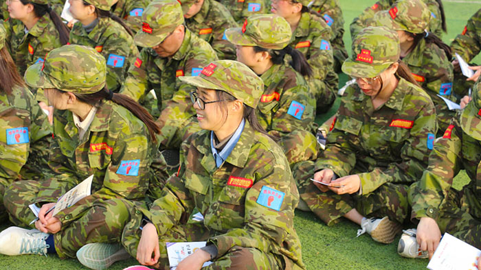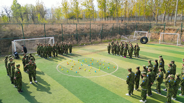 在教練的專業指導下,大家首先熟練了站軍姿,集合解散等列隊項目,隨后榮盛全體伙伴劃分為穿云隊——“一支穿云箭,千軍萬馬來相見”、躺贏隊 ——“躺贏躺贏,躺著就贏”、超越隊——“超越di一,永遠wu敵”、戰狼隊——“戰狼出征,寸草不生”四個小隊。大家一個個精神抖擻,躍躍欲試,對接下來的訓練充滿了熱情與期待。