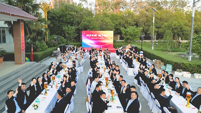隨著一陣陣歡呼聲,家宴正式拉開序幕,董事長楚科奇及集團管理層共同登臺祝酒,為這個美好的歡聚時刻,與所有家人舉杯慶!,F場華燈璀璨,笙歌高揚,家人滿座,笑語滿堂。