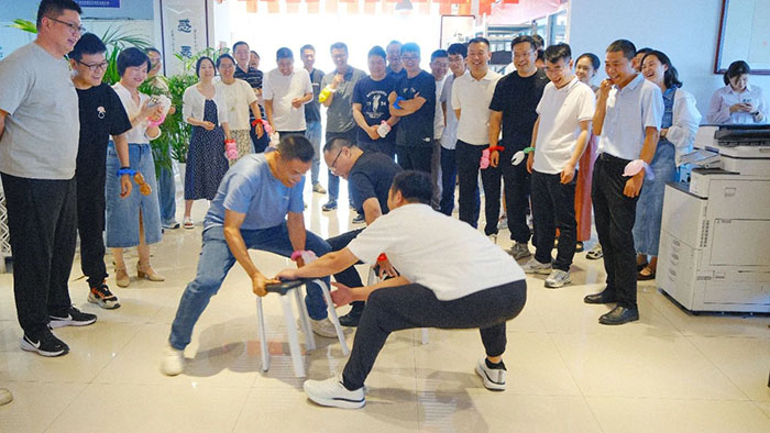 「你畫我猜」環節,每隊派出精兵強將,接力作畫猜詞,只見畫筆在白板上快速游走,傳遞時,隊員們都眉頭緊鎖、神情專注地思考,努力挖取線索,直到最后一人喊出正確答案,全場爆發熱烈的掌聲,團隊的默契在這一刻達到極致,隊員們捧著豐富的禮品都露出勝利的喜悅。