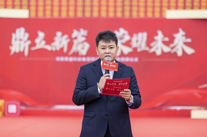 zui后,在熱情洋溢的現(xiàn)場(chǎng)氛圍中,河南榮盛科技集團(tuán)董事長(zhǎng)楚科奇發(fā)布了致辭。他首先代表集團(tuán)向蒞臨現(xiàn)場(chǎng)的各位領(lǐng)導(dǎo)、嘉賓及全體員工表示熱烈歡迎與誠(chéng)摯感謝。楚總回顧了集團(tuán)十二年的發(fā)展歷程,指出新材料生產(chǎn)基地的建成,凝聚了全體榮盛人的智慧、汗水與堅(jiān)守,是企業(yè)十二年奮斗征程上的重要里程碑,更是企業(yè)面向未來(lái)、決勝未來(lái)的戰(zhàn)略新起點(diǎn)。楚總強(qiáng)調(diào),新工廠的順利落成,得益于各級(jí)主管部門的大力支持與高效服務(wù),也離不開(kāi)集團(tuán)管理層的高效協(xié)同與一線團(tuán)隊(duì)的奮力拼搏。他特別感謝了王海軍總經(jīng)理及集團(tuán)管理層,稱贊其在項(xiàng)目戰(zhàn)略定位與資源配置中發(fā)揮的關(guān)鍵作用;同時(shí),他也向宋廣林總經(jīng)理及全體建設(shè)者致敬,感謝他們不畏艱辛、全力以赴,將一片荒蕪之地打造為現(xiàn)代化智能工廠。